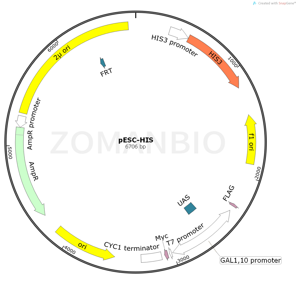 質粒序列請下載:ZK948pESC-HIS釀酒酵母質粒.txt