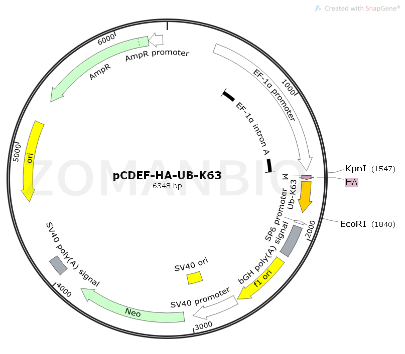 質粒序列可參考(具體以測序為準)下載:ZK1475 pCDEF-HA-Ub-K63人源基因質粒.txt