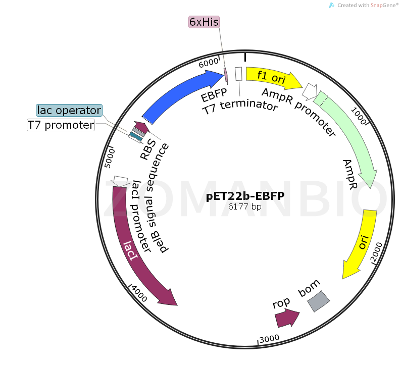 質粒序列請下載:ZK1636 pET22b-EBFP大腸熒光質粒.txt