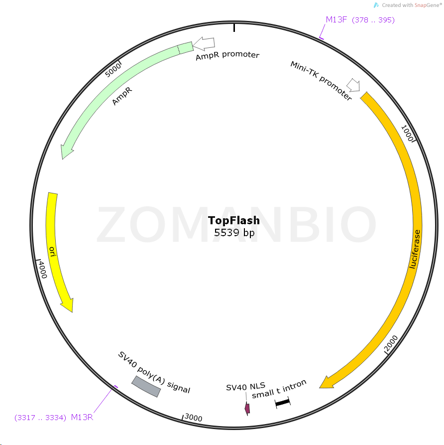 質粒序列請下載:ZK1698 TopFlash哺乳報告質粒.txt