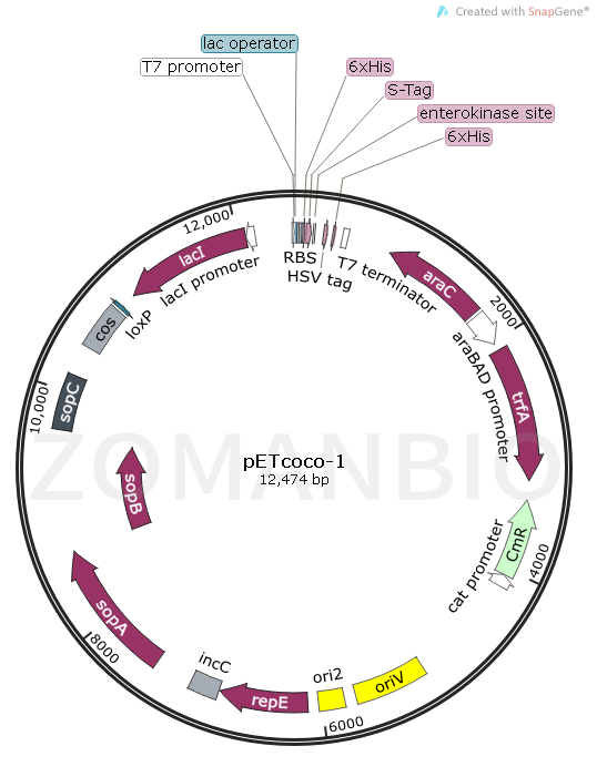 質粒序列請下載:ZK1769 pETcoco-1大腸表達質粒.txt