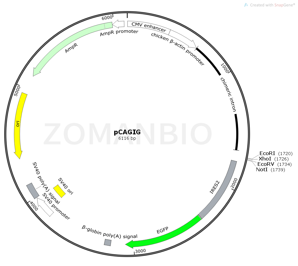 質粒序列請下載:ZK1804 pCAGIG哺乳表達質粒.txt