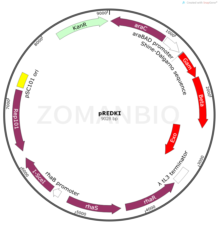 質粒序列請下載:ZK2016 pREDKI大腸敲除質粒.txt