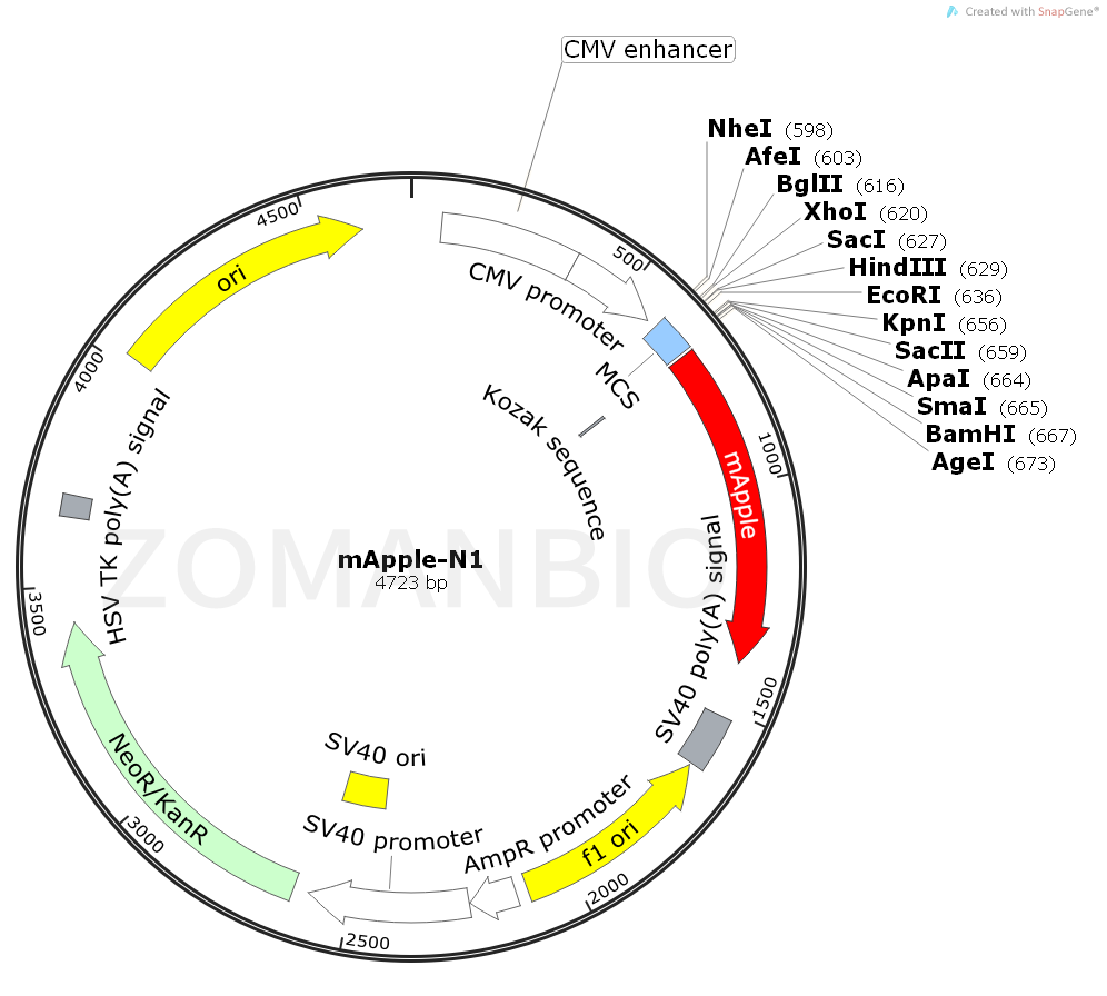 質粒序列請下載:ZK2074 mApple-N1哺乳熒光質粒.txt